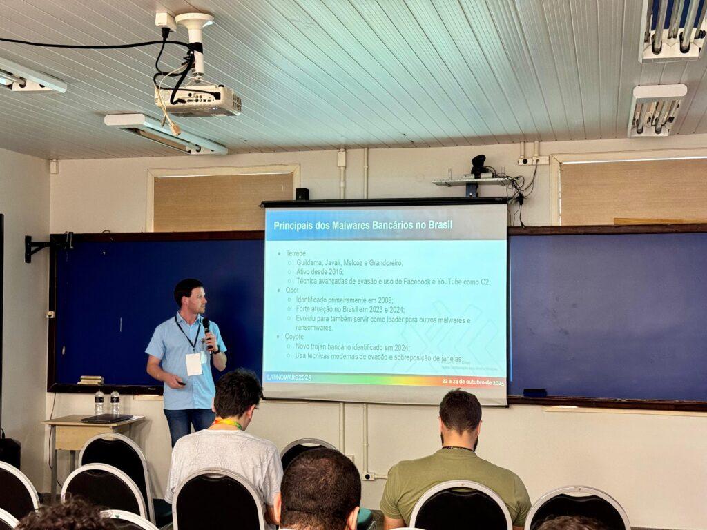 Lucas apresentou o avanço de malwares em golpes contra sistemas bancários. Foto: Welyton Manoel